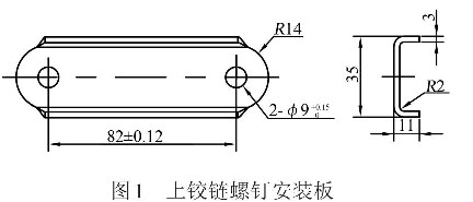 圖1所示為材料為DCOI的上鉸鏈螺釘安裝板,材料含碳量≤10%,抗拉 強度≥270 MPa,屈服強度130--260 MPa,斷后伸長 率≥28%,料厚3 mm,年產量12萬件。沖壓成形性能好。鑒于原有成型方案存在操作有安全隱患,工作效率 低,機床占用率高,零件質量不穩(wěn)定等問題?,F將 原成形工藝進行優(yōu)化,設計了一副三工位的級進 模,以確保安全生產,提高生產效率和零件質量,降 低生產成本。