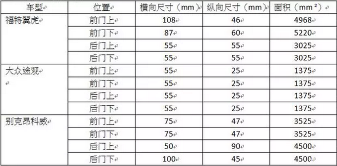 該報道內(nèi)列出,20萬元左右SUV車門鉸鏈對比表
